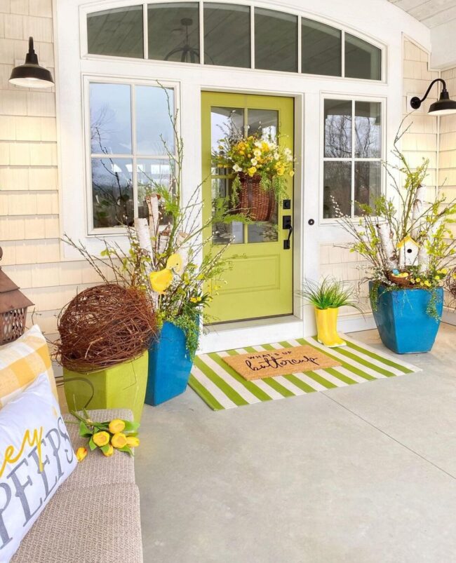 Mixing textures and heights ensures your porch becomes a delightful Easter showcase that neighbors and passersby will admire.
