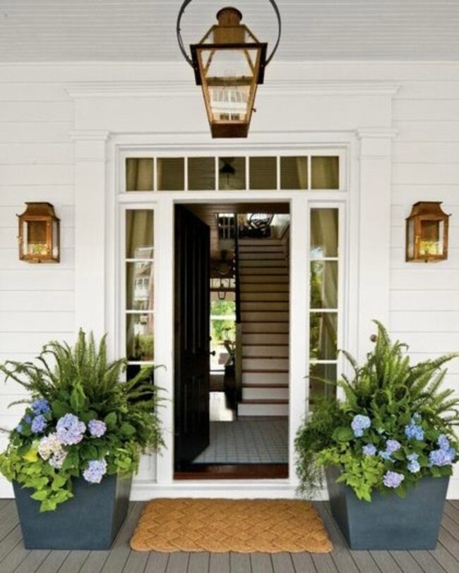 Lush plants like fiddle-leaf figs, ornamental grasses, or cascading ferns transform bland entryways into welcoming landscapes.