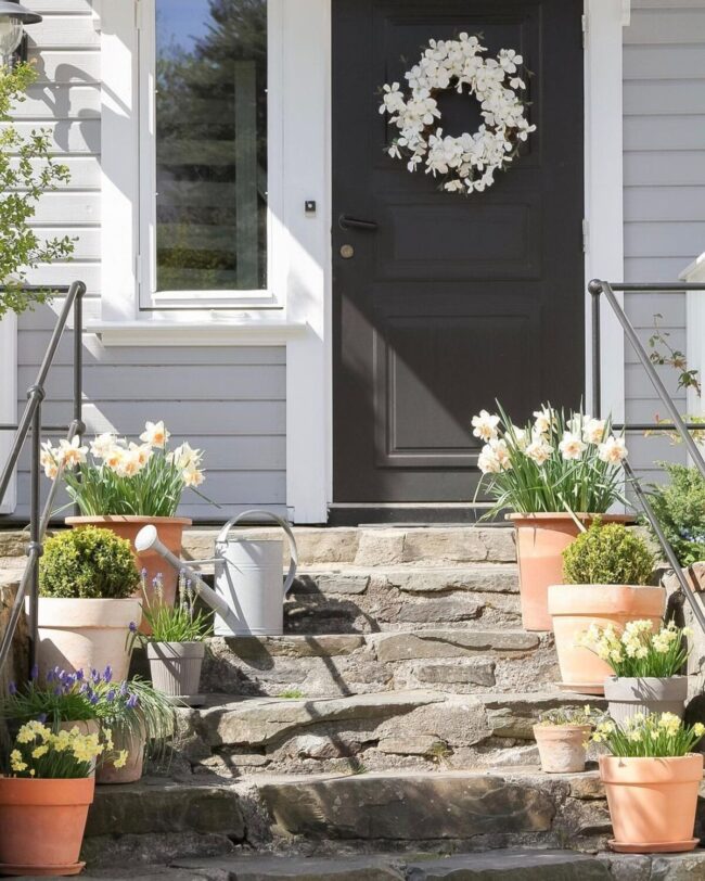 Spring porch decor bursts with color and charm when potted flowers take center stage, instantly elevating outdoor spaces with natural beauty.