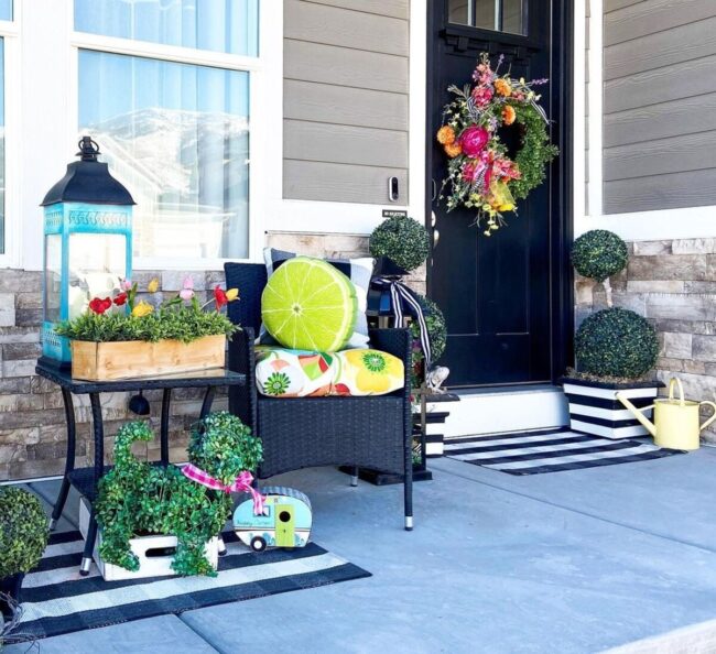 Vibrant colors like coral, turquoise, and sunny yellow can instantly revive your porch's appearance and mood.
