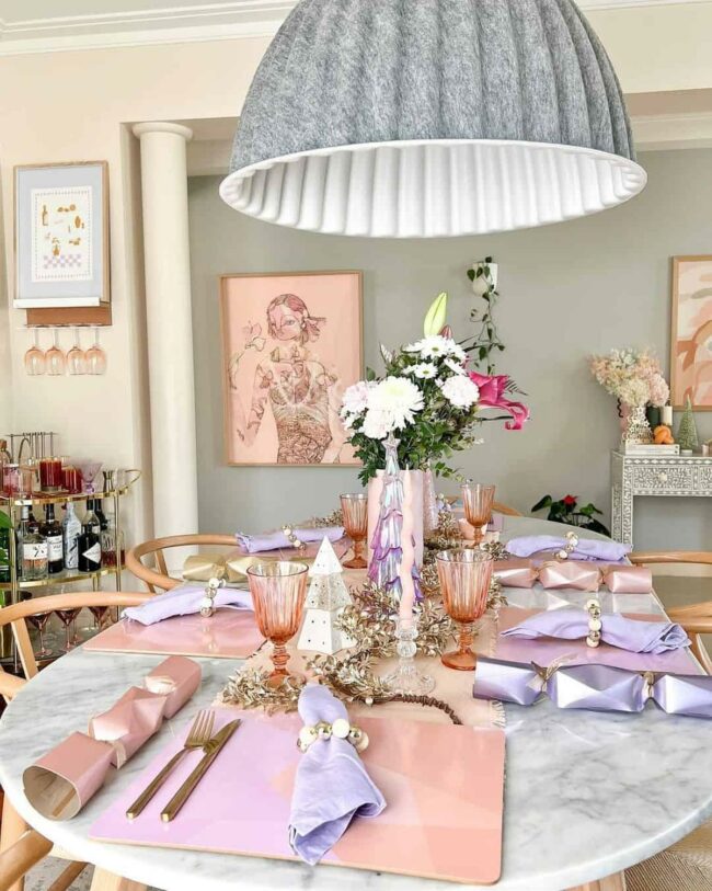 Pink and purple accents breathe new life into classic Christmas decor, making gatherings feel fresh and exciting.
