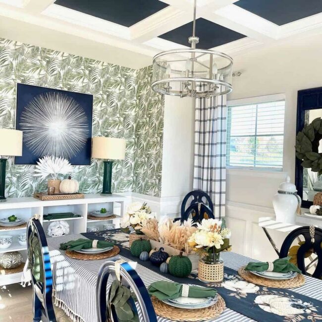 Subtle touches of color and texture transform the dining area into a welcoming sanctuary that celebrates autumn's unique beauty.