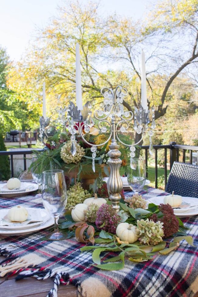 Plaid decor breathes life into outdoor dining with its rich autumn palette and contemporary edge.