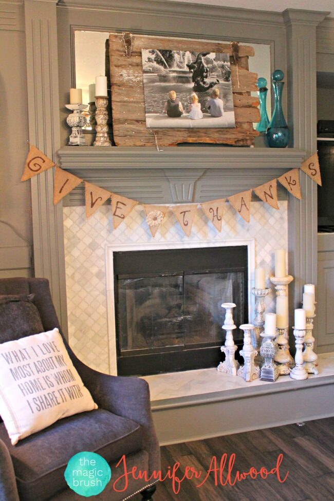 Carefully selected elements blend together, transforming a simple mantel into a stunning seasonal focal point.