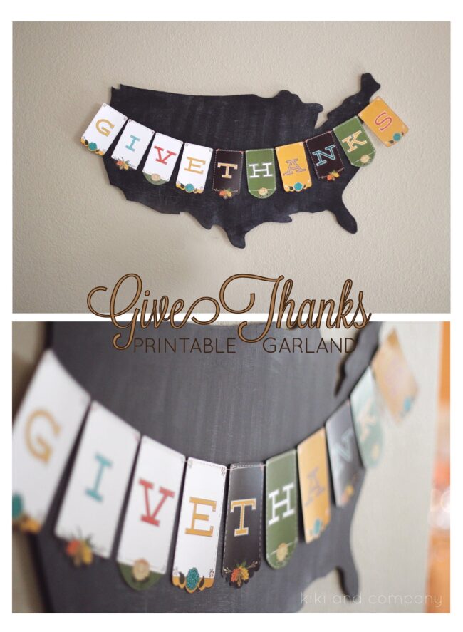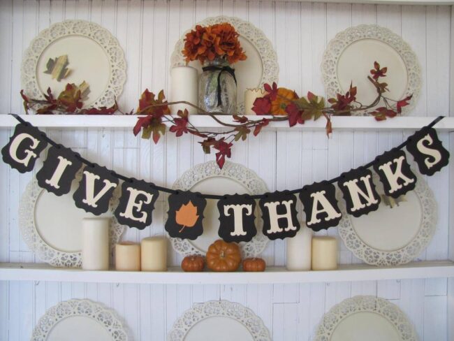 Patriotic bunting with bold red "Thankful" lettering brings a unique, Americana-inspired touch to holiday decor.