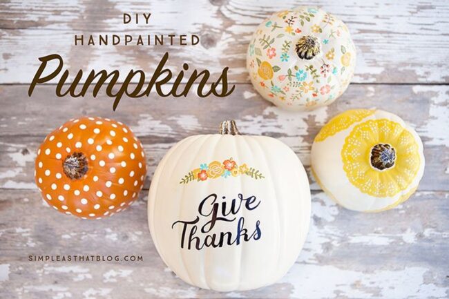 Painted pumpkins bring unexpected magic to autumn decor with bold stripes, polka dots, and whimsical floral patterns that pop in orange and white.