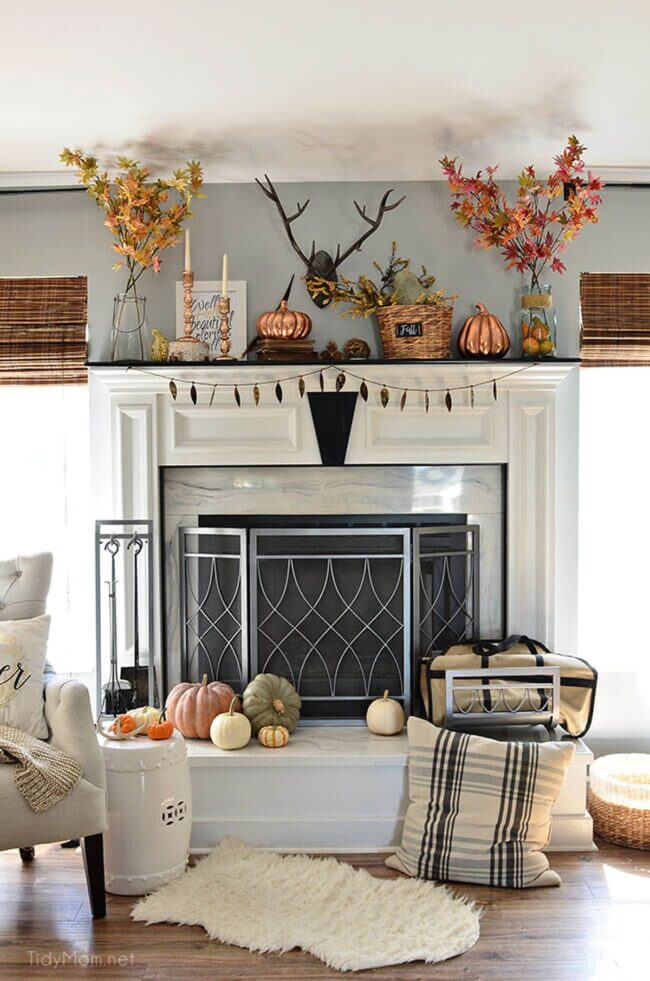 Rustic Copper Autumn Mantel
