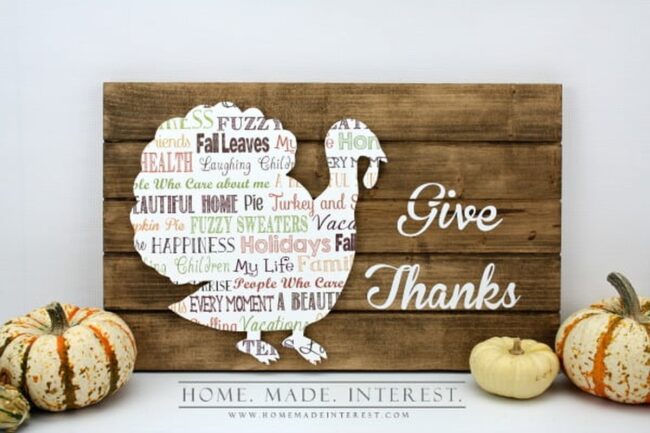 Wooden tags hanging from twine create a heartwarming welcome at your doorstep during Thanksgiving.