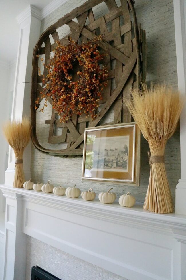 White Pumpkins Rustic Wooden Mantel