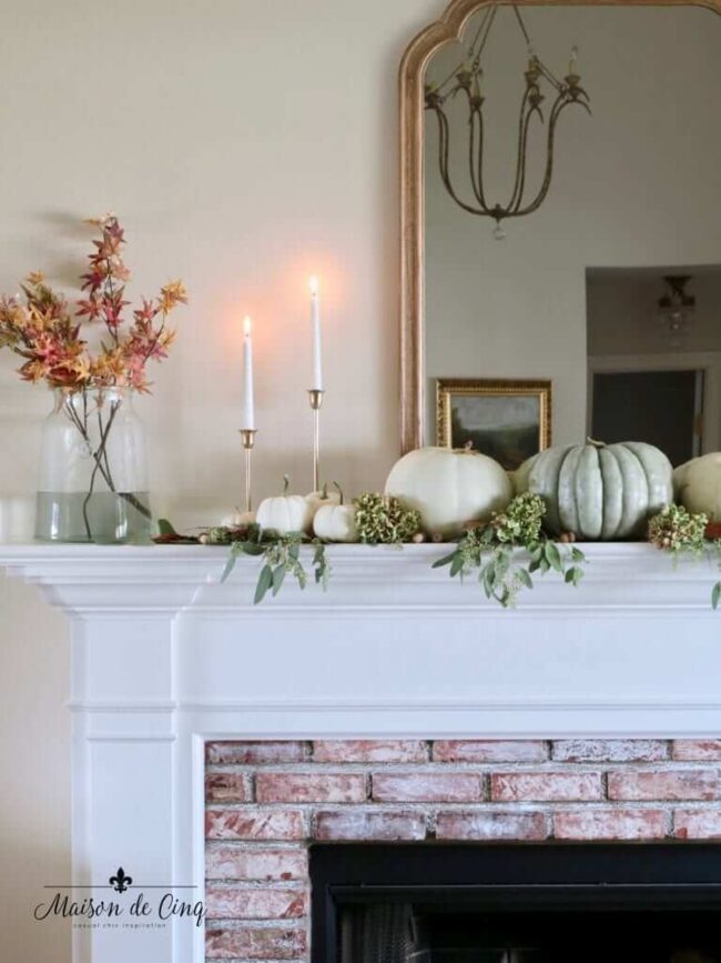 Carefully curated elements transform an ordinary mantel into a stunning seasonal focal point.
