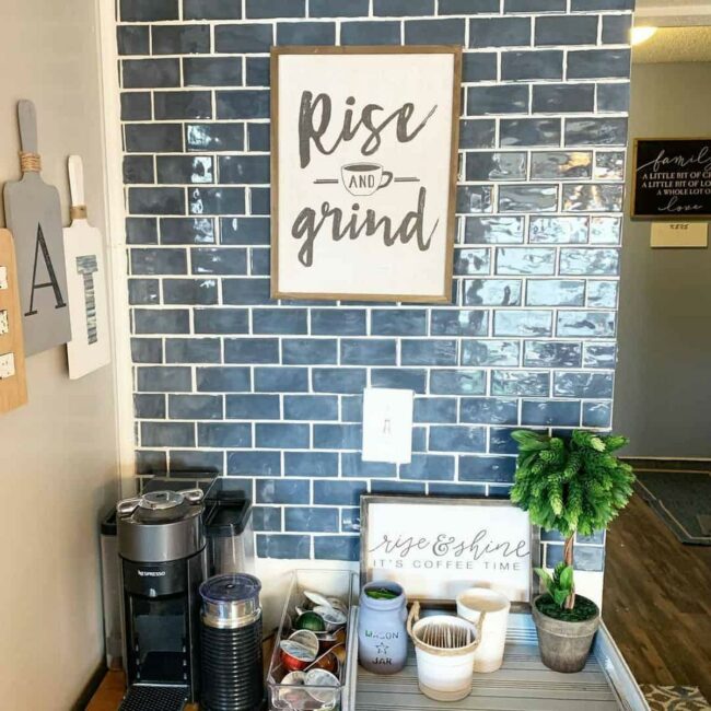 Charming details like white flowers and rustic brown bottles complete the scene, adding warmth and personality to the heart of your home.