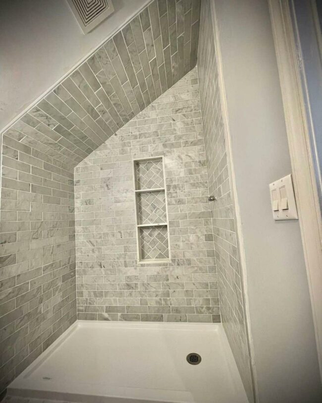 Spa-like ambiance emerges from subtle tile placement that whispers calm and elegance.