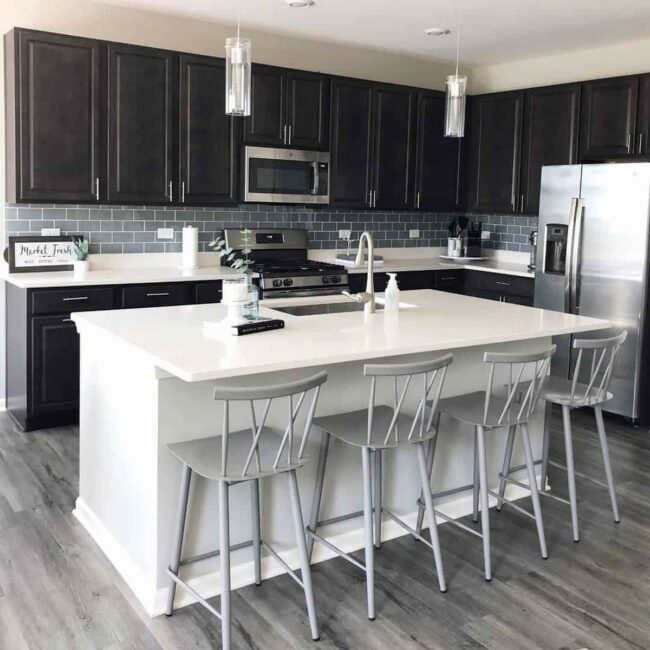Black cabinets make a dramatic statement against subtle gray subway tiles, instantly elevating kitchen aesthetics.