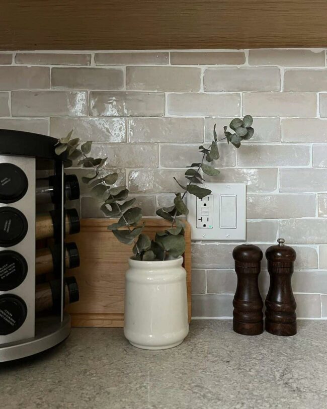 Greenery in a simple vase breathes life onto the countertop, creating a refreshing visual accent.