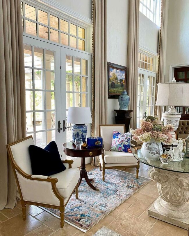 Antique accents blend seamlessly with textured drapes, creating an inviting warmth that captures your imagination.