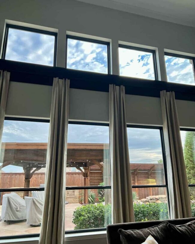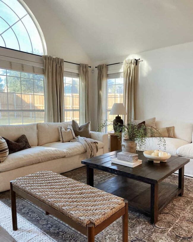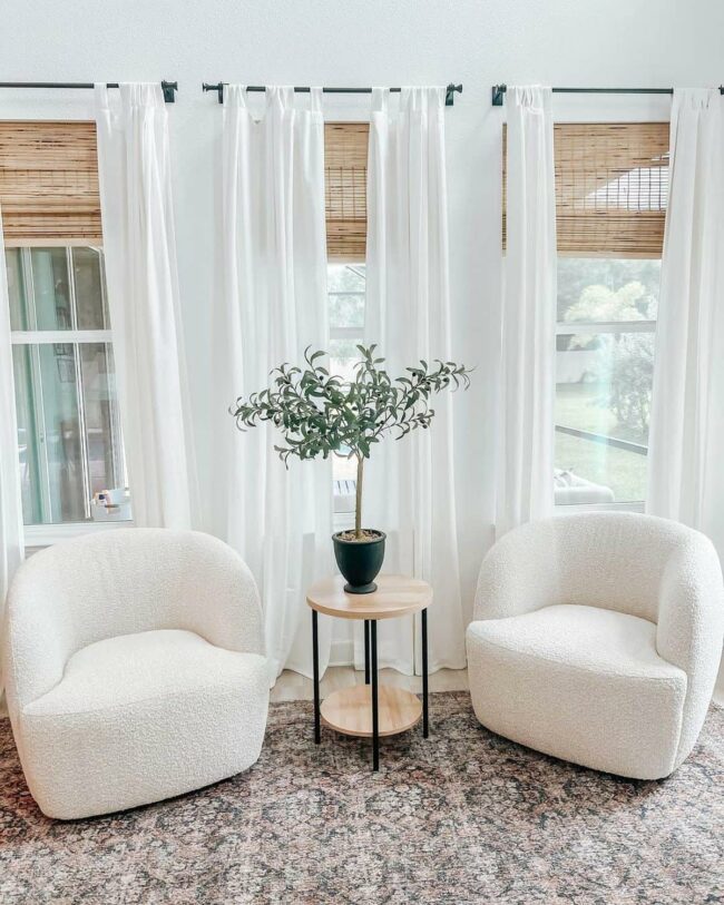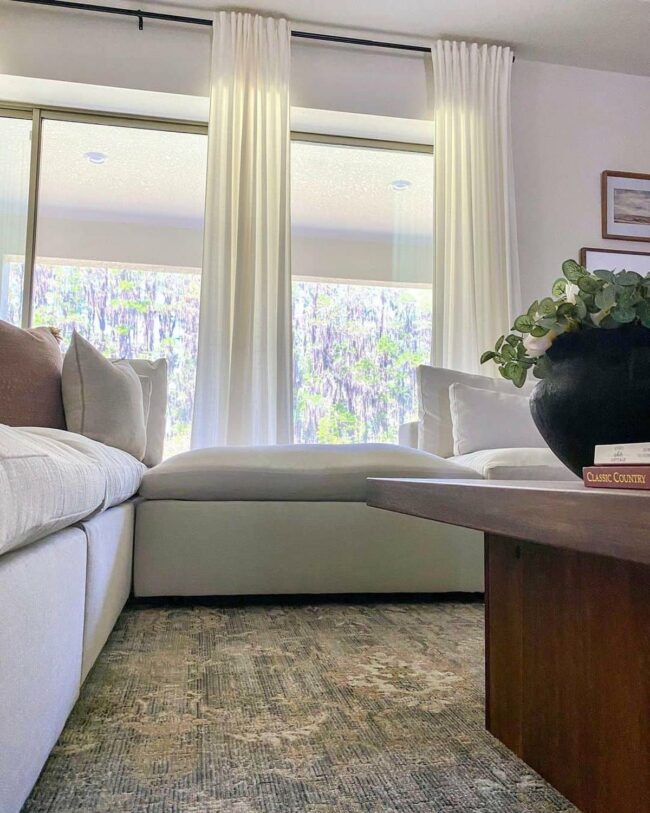 Living room design reaches new heights with airy drapes that whisper elegance and calm.