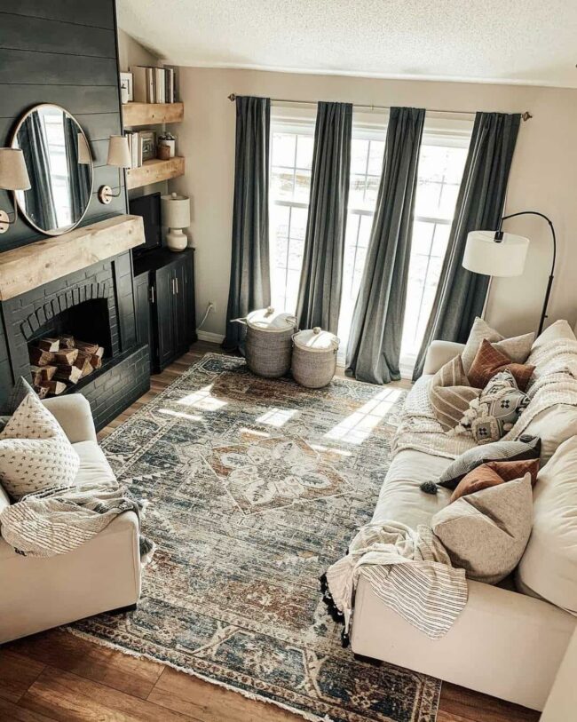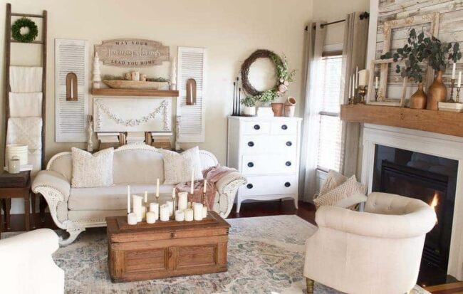 Farmhouse living room corners radiate warmth through strategic design elements that capture rustic charm.