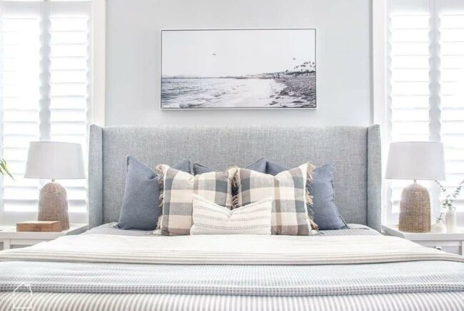 Natural light dances off muted walls, enhancing the tranquil vibe while giving the bedroom a timeless appeal.
