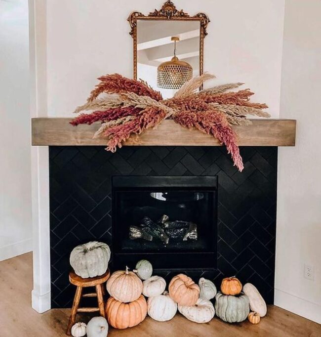 Fall mantel magic bursts with natural wonder, drawing your eye across a carefully curated landscape of seasonal charm.