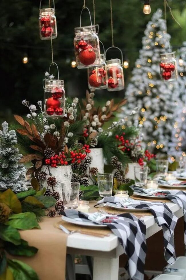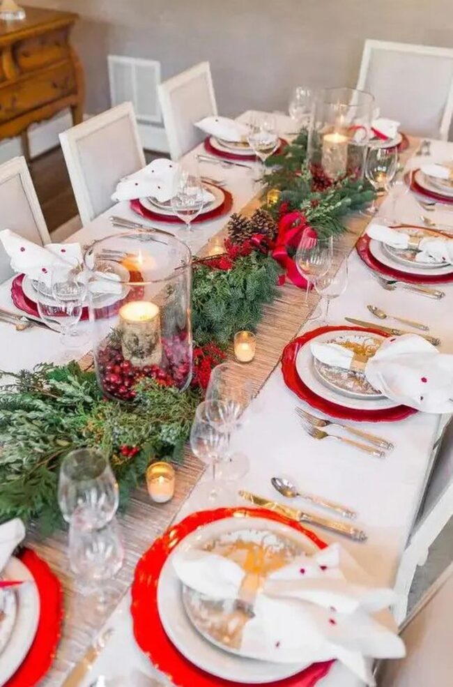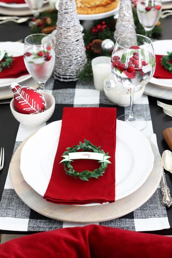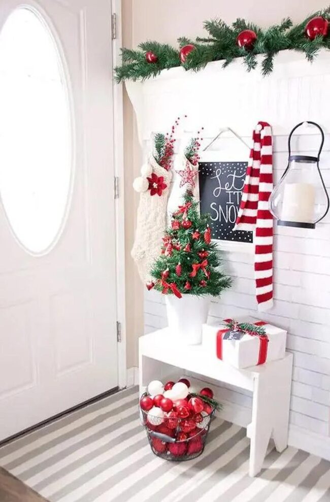 Festive corners sparkle with clever details that draw your eye and heart, mixing red and white colors in delightful harmony.