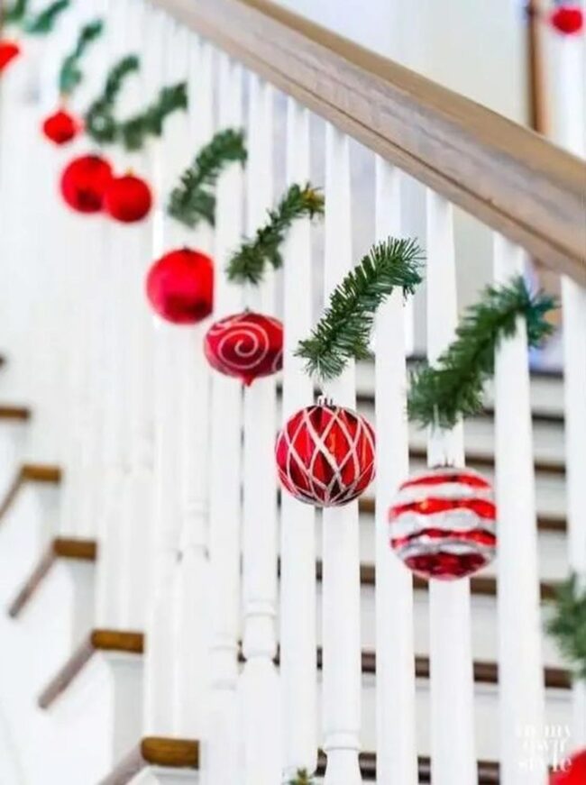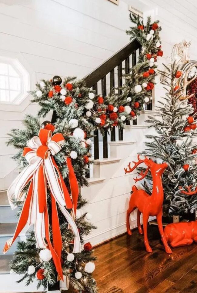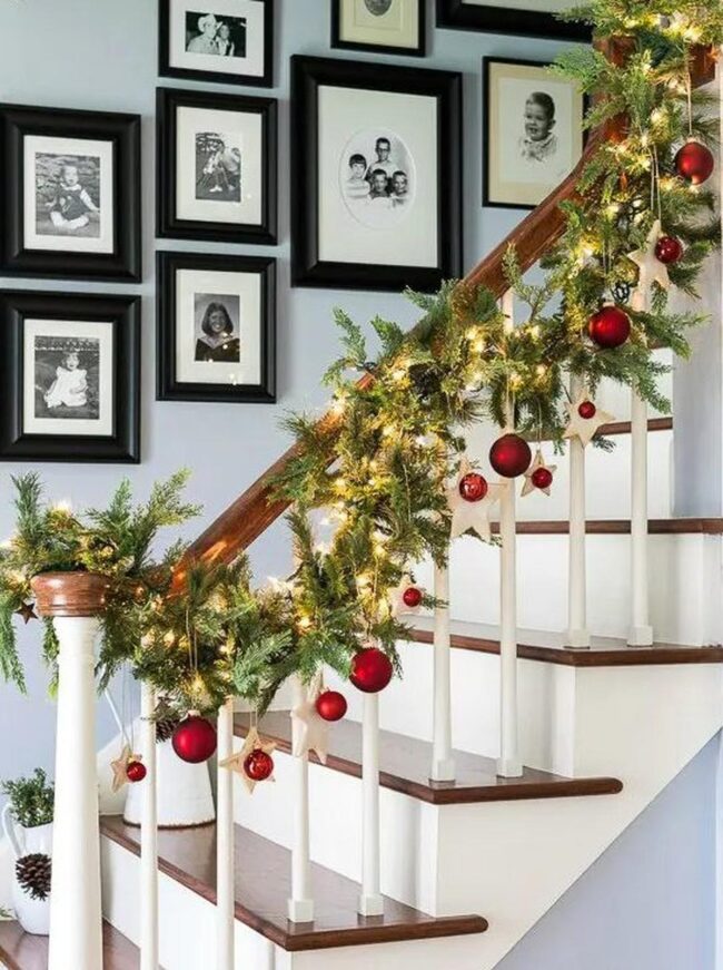 Holiday staircases burst with welcoming charm that pulls everyone into festive excitement.