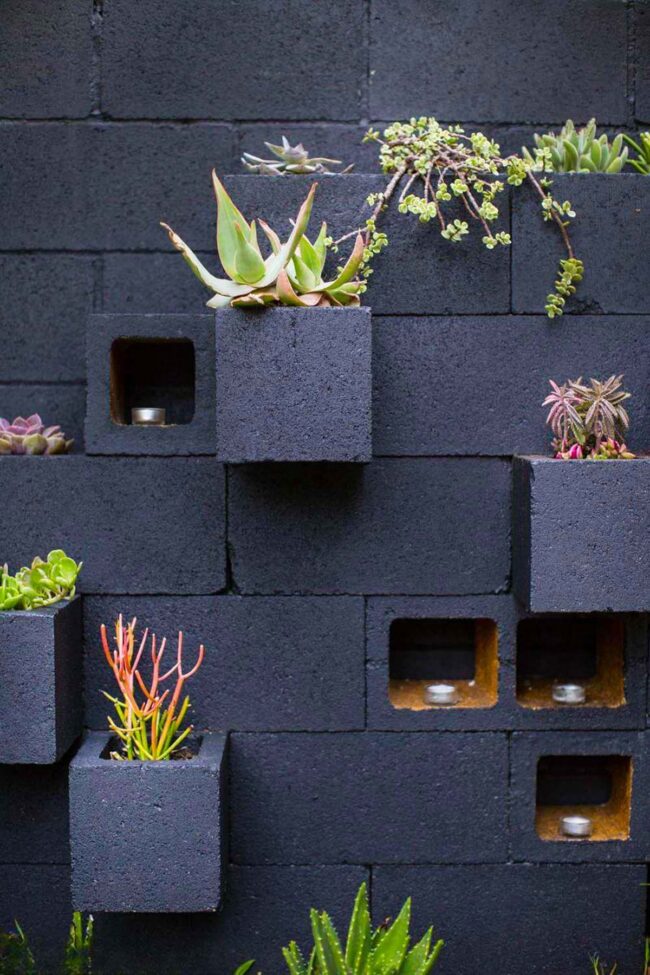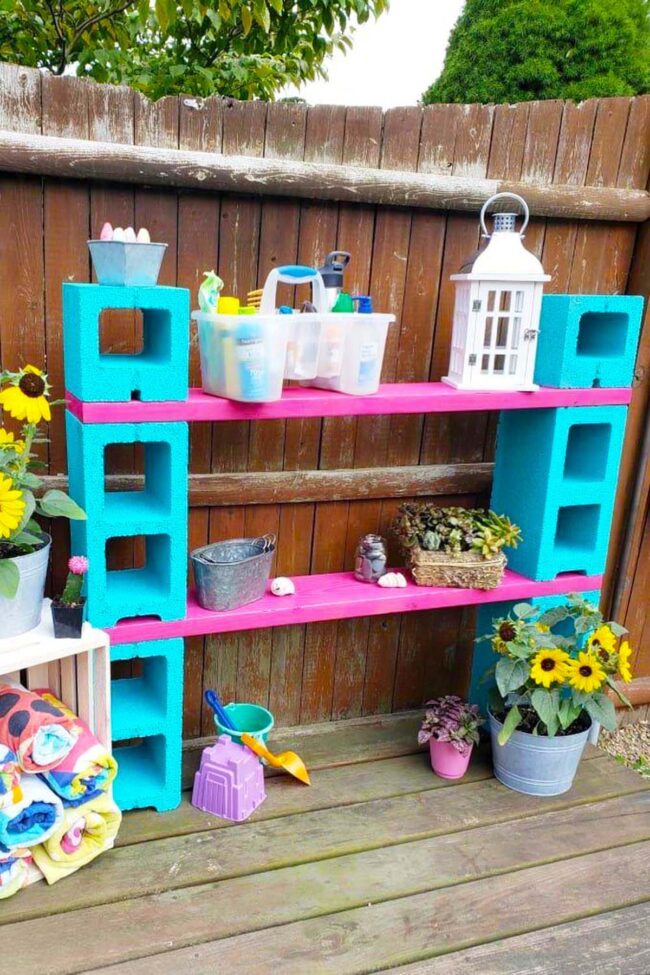 Cinder block shelving creates an eye-catching garden display that maximizes outdoor space with minimal effort and cost.
