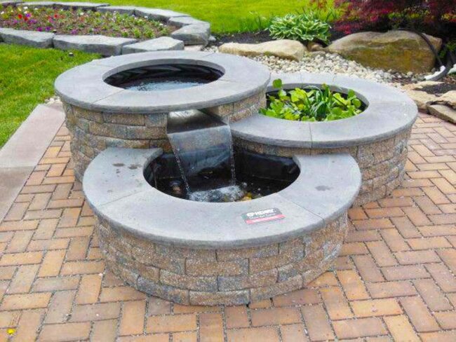 Mulched garden beds surrounding these water features enhance landscape aesthetics with complementary textures and rich earth tones.