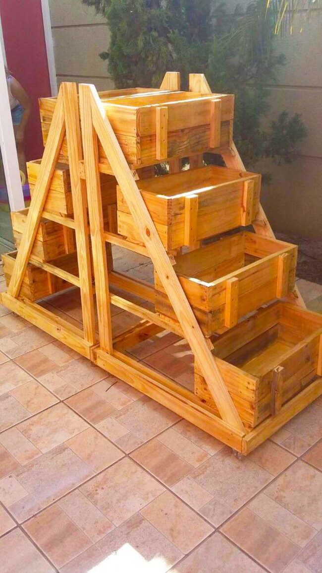 Wooden pallets provide perfect mounting surfaces for creating vertical garden displays that add character to outdoor areas.