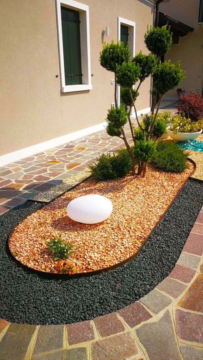 Pebbles and stones of various sizes contribute texture and visual interest to the carefully curated landscape.