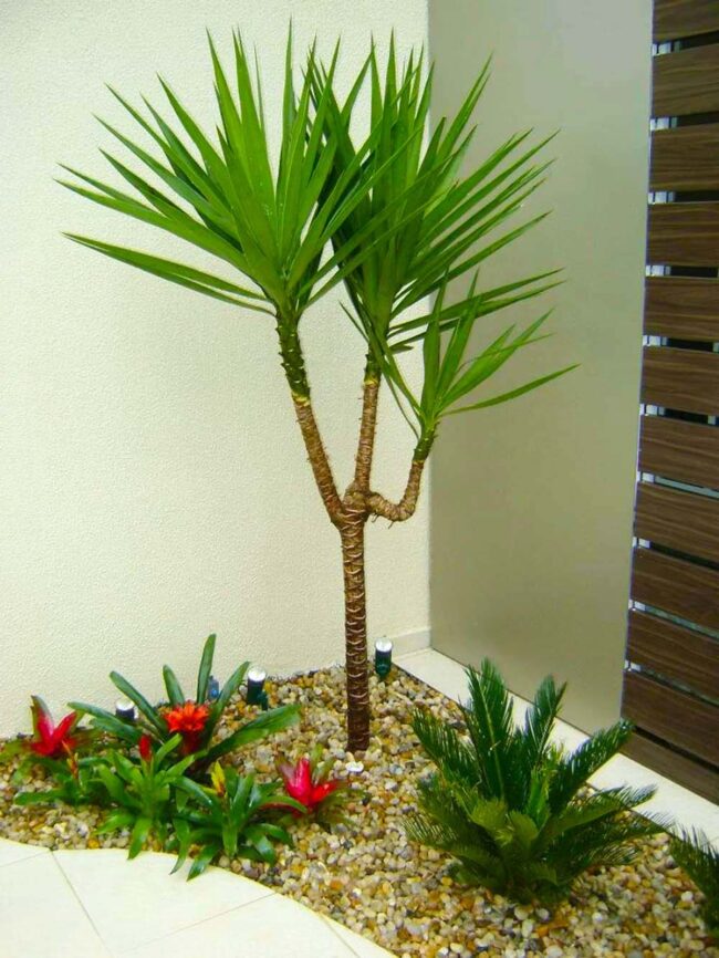 Palm trees stand tall as centerpiece architectural statements, creating elegant vertical lines against surrounding terrain.