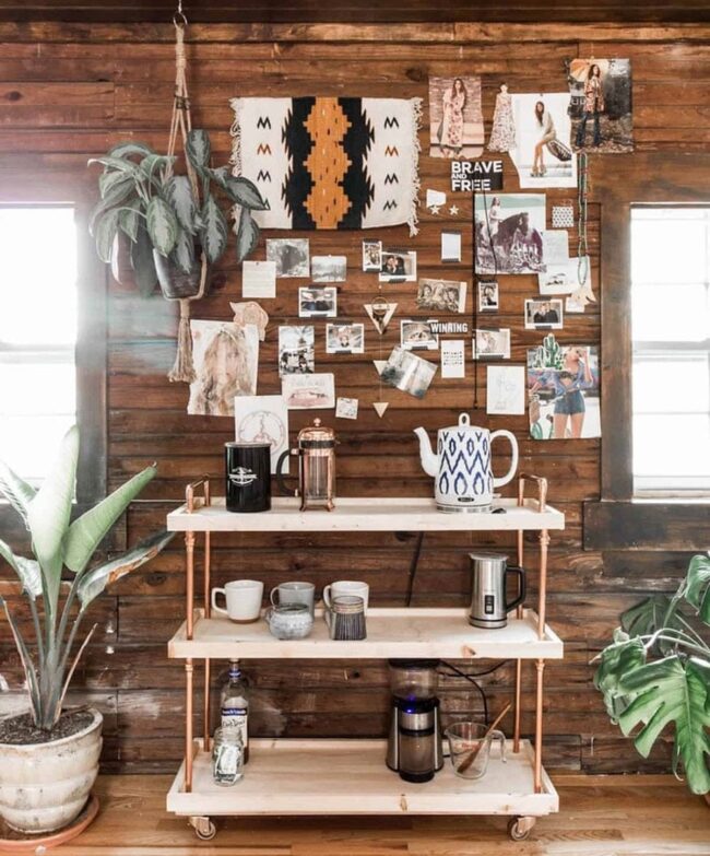 Boho coffee stations burst with personality, showcasing rustic wooden elements that anchor the entire design with warm charm.