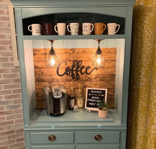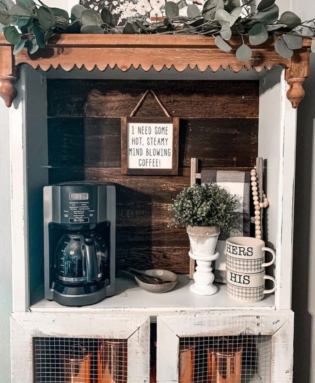 Magic happens when you repurpose an old cabinet into a charming coffee nook that sparks joy and conversation.