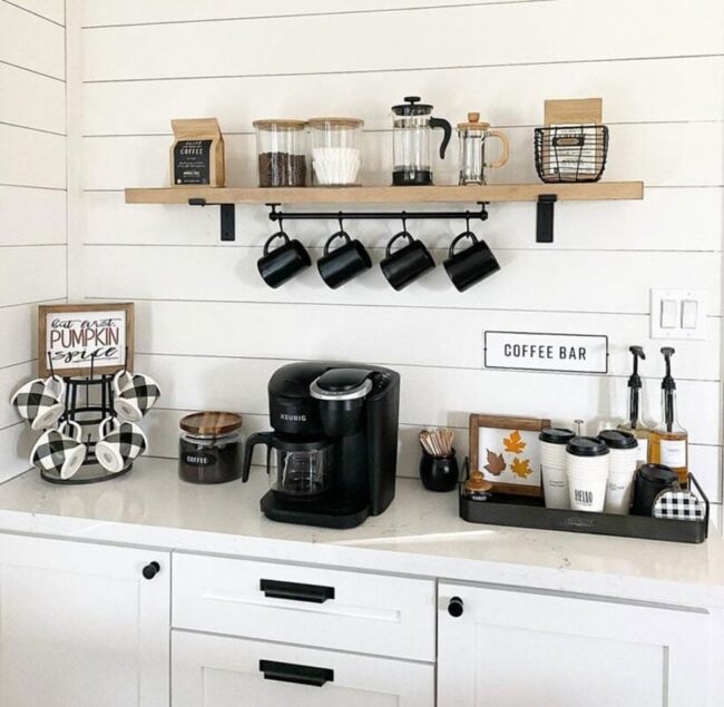 The right accessories and thoughtful organization turn this area into more than just a place for brewing coffee; it becomes an experience in itself.