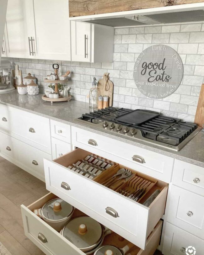 Kitchen spaces sparkle with farmhouse signs that radiate rustic warmth and modern style.