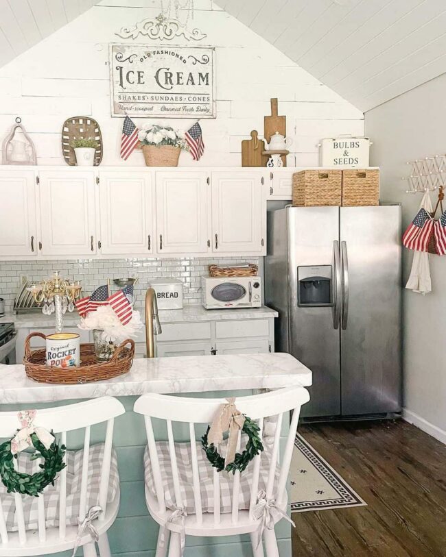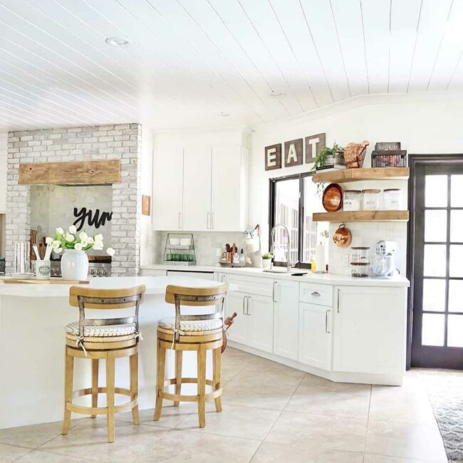 White kitchens sparkle with farmhouse signs that radiate warmth and character.