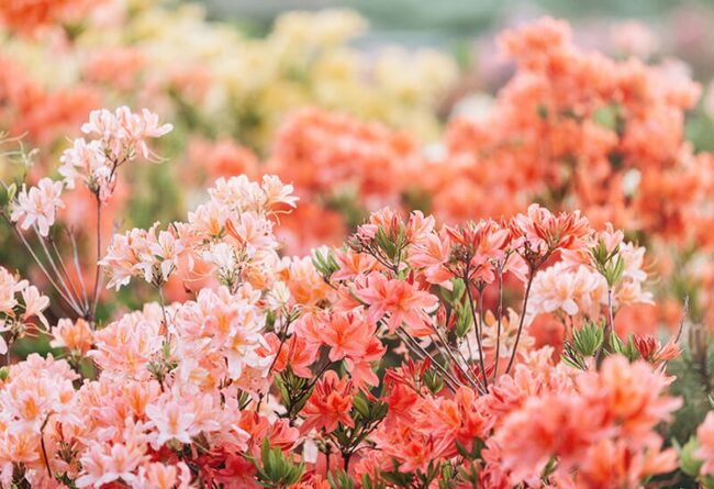 Coral-pink azaleas electrify shaded garden spaces with stunning beauty, creating an instant visual masterpiece that captures attention.