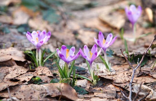 Their vibrant hues range from deep purples to soft lavenders, creating a gentle contrast against dormant winter landscapes.