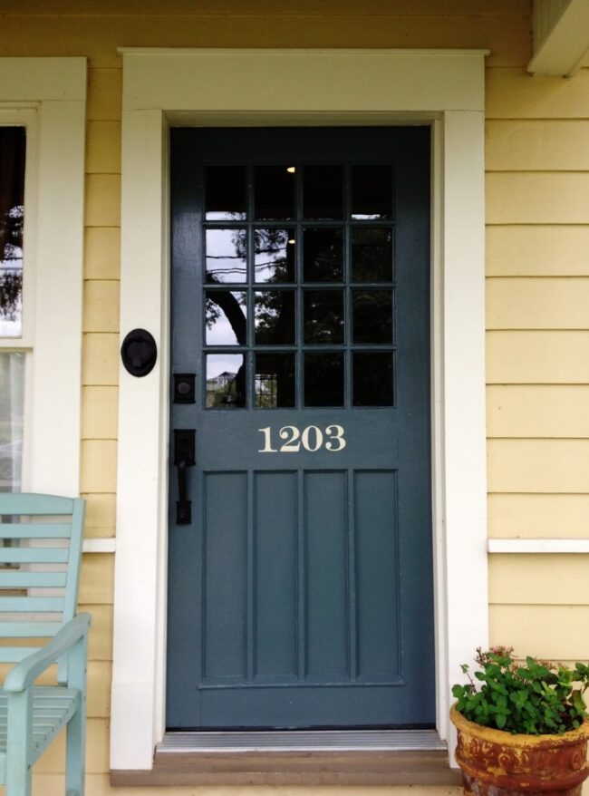 Carefully selected cream house numbers in a distinctive font become a subtle design statement that beautifully echoes the home's trim color.