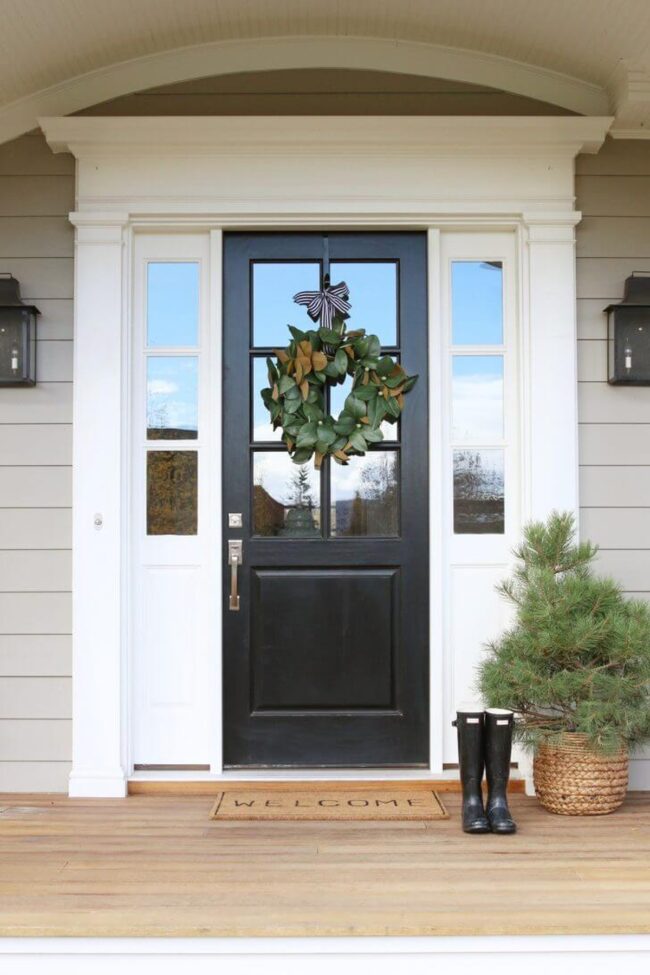 Wreath placement near clean white trim enhances the overall elegant composition.