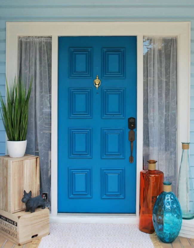 Small details like color coordination make this entrance feel both welcoming and unique.