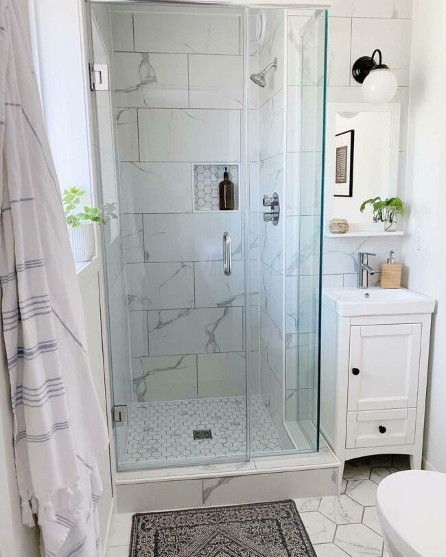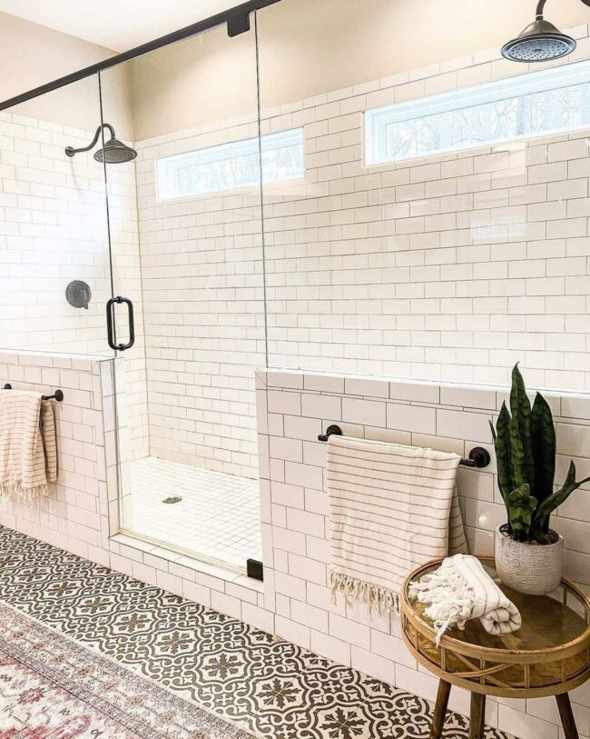 Clever tile arrangements make even compact bathrooms feel luxurious and thoughtfully designed.