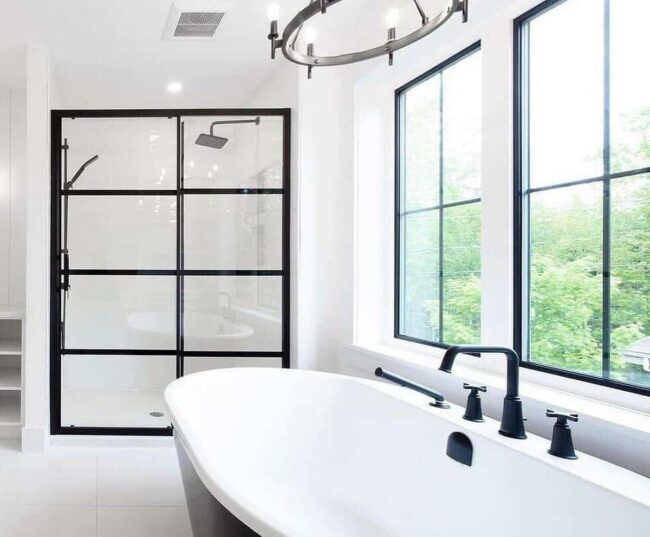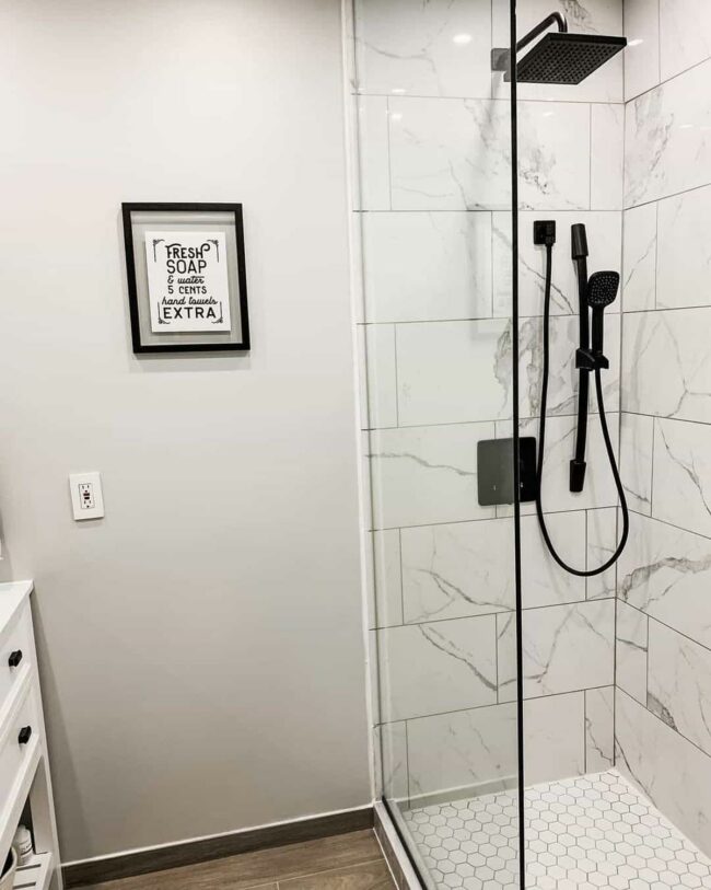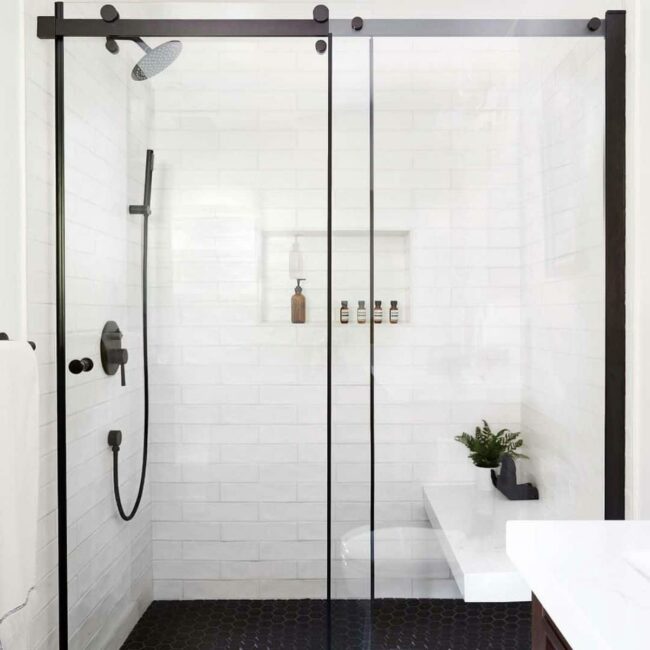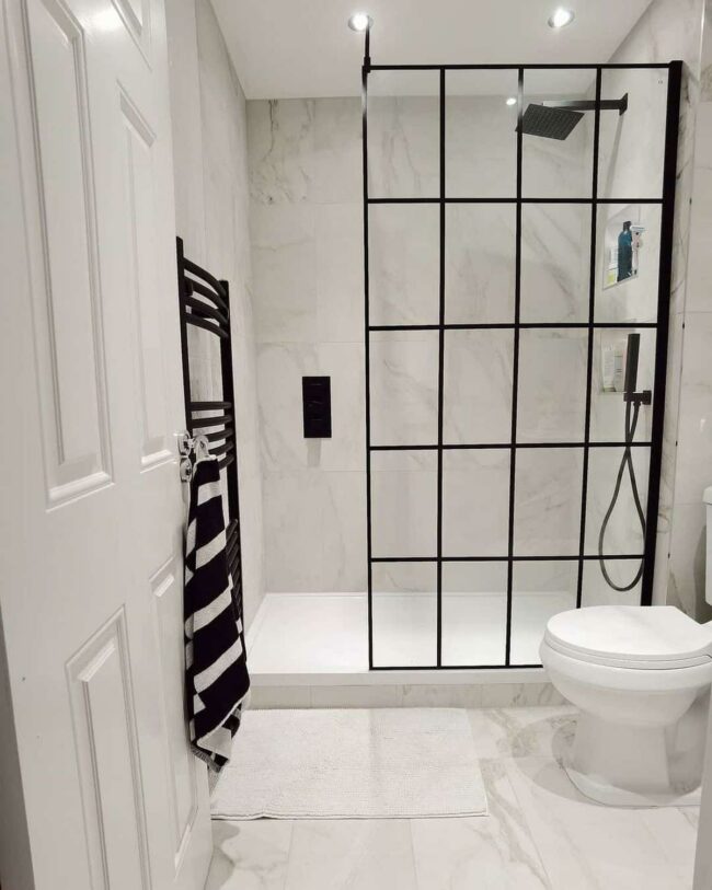 Black and white walk-in showers make bathrooms feel incredibly sophisticated.