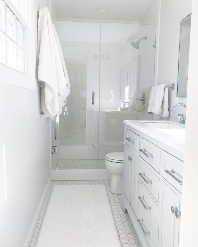 White bathrooms radiate calm sophistication with their clean aesthetic and pure energy.