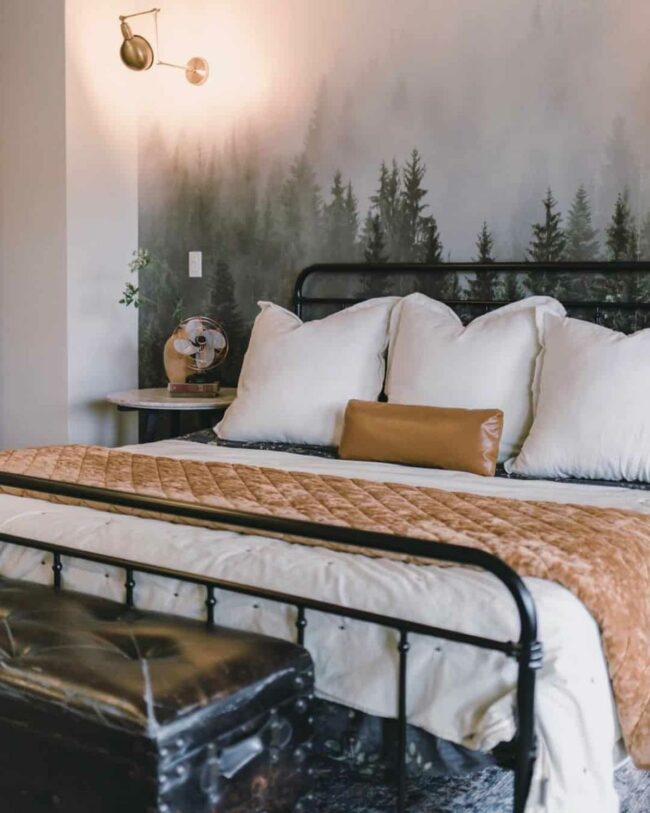 Forest wallpaper breathes magic into your bedroom, pulling wilderness right inside your personal space.