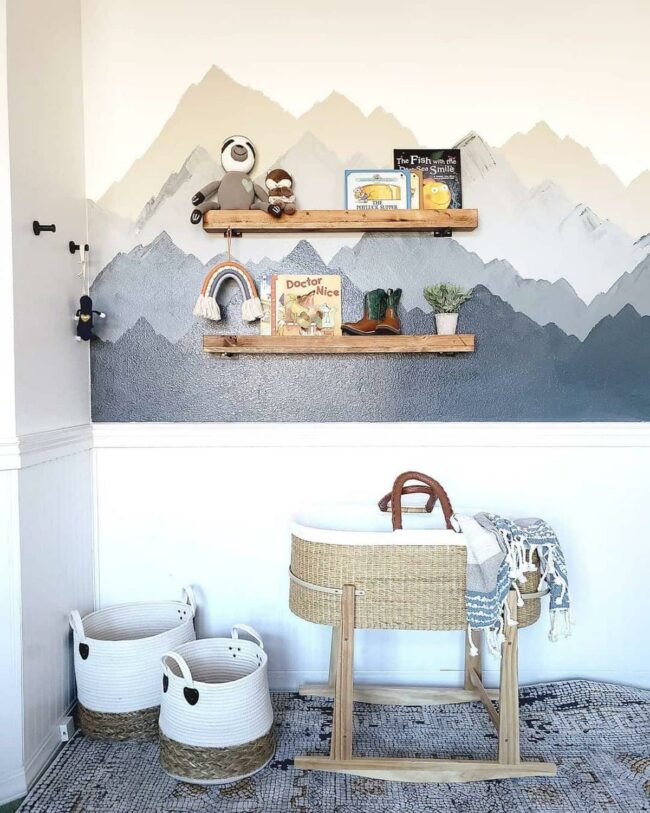 Mountain-inspired gray nurseries capture hearts with their adventurous charm and soothing palette.