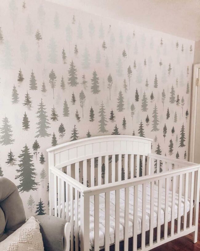 Mountain half walls in soothing gray set a calm scene for your baby's sanctuary.
