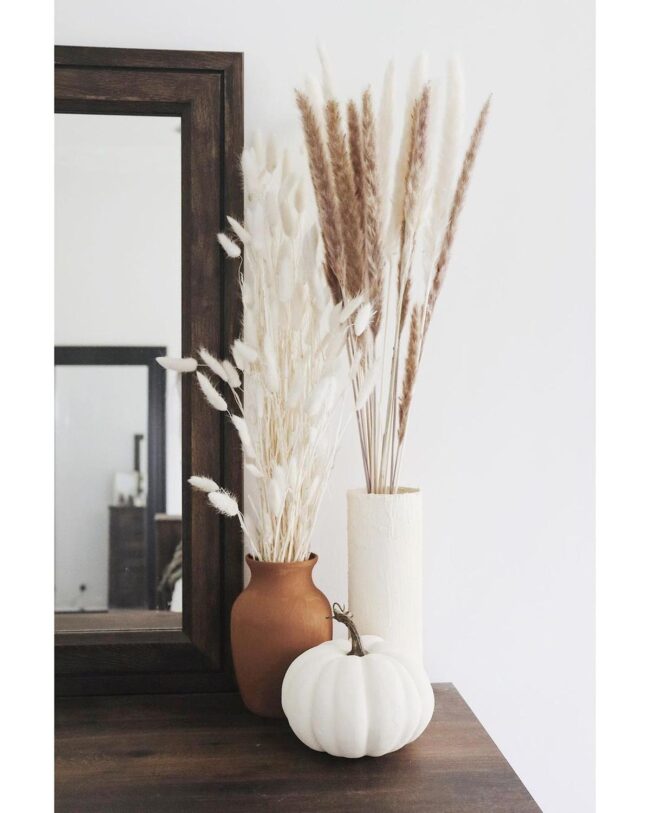 Soft white pumpkins nestled among dried grasses whisper autumn's gentle arrival, capturing seasonal magic without overwhelming the space.