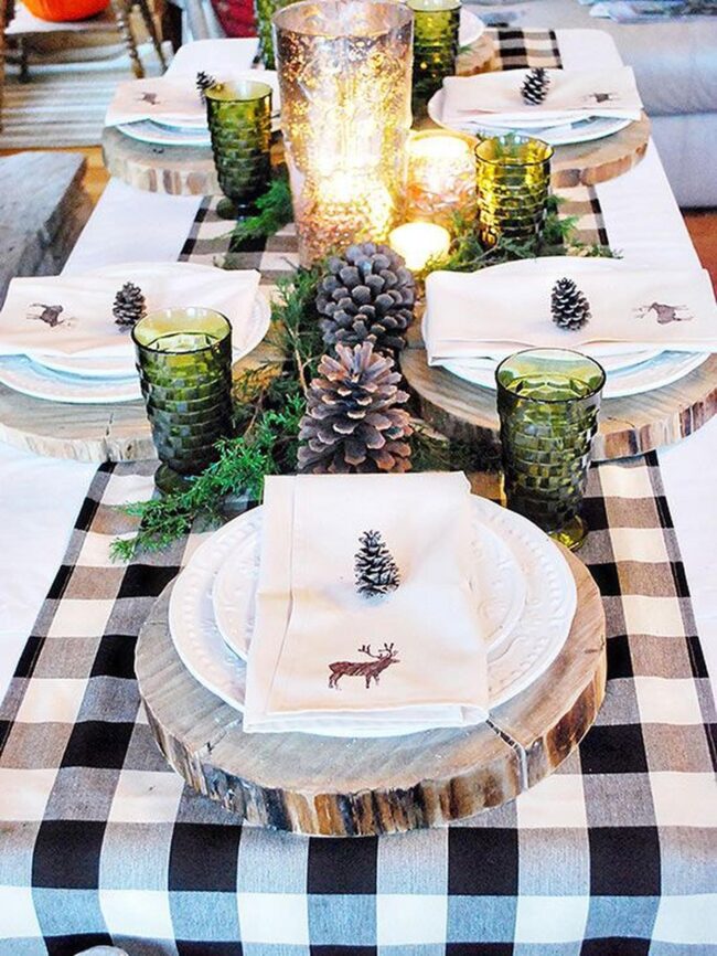 Delicate deer-printed napkins adorned with tiny pine cones whisper woodland stories without saying a word.
